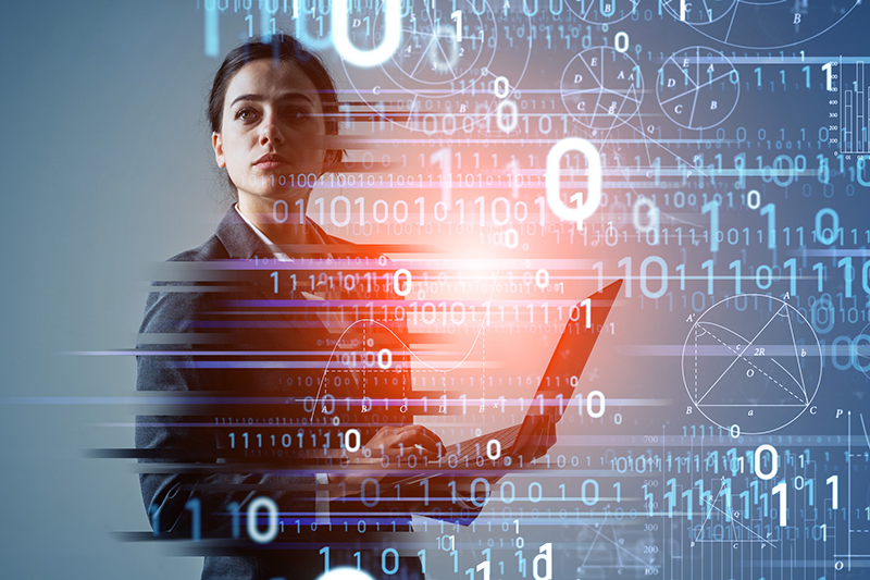 Digital transformation concept. Binary code. AI (Artificial Intelligence).